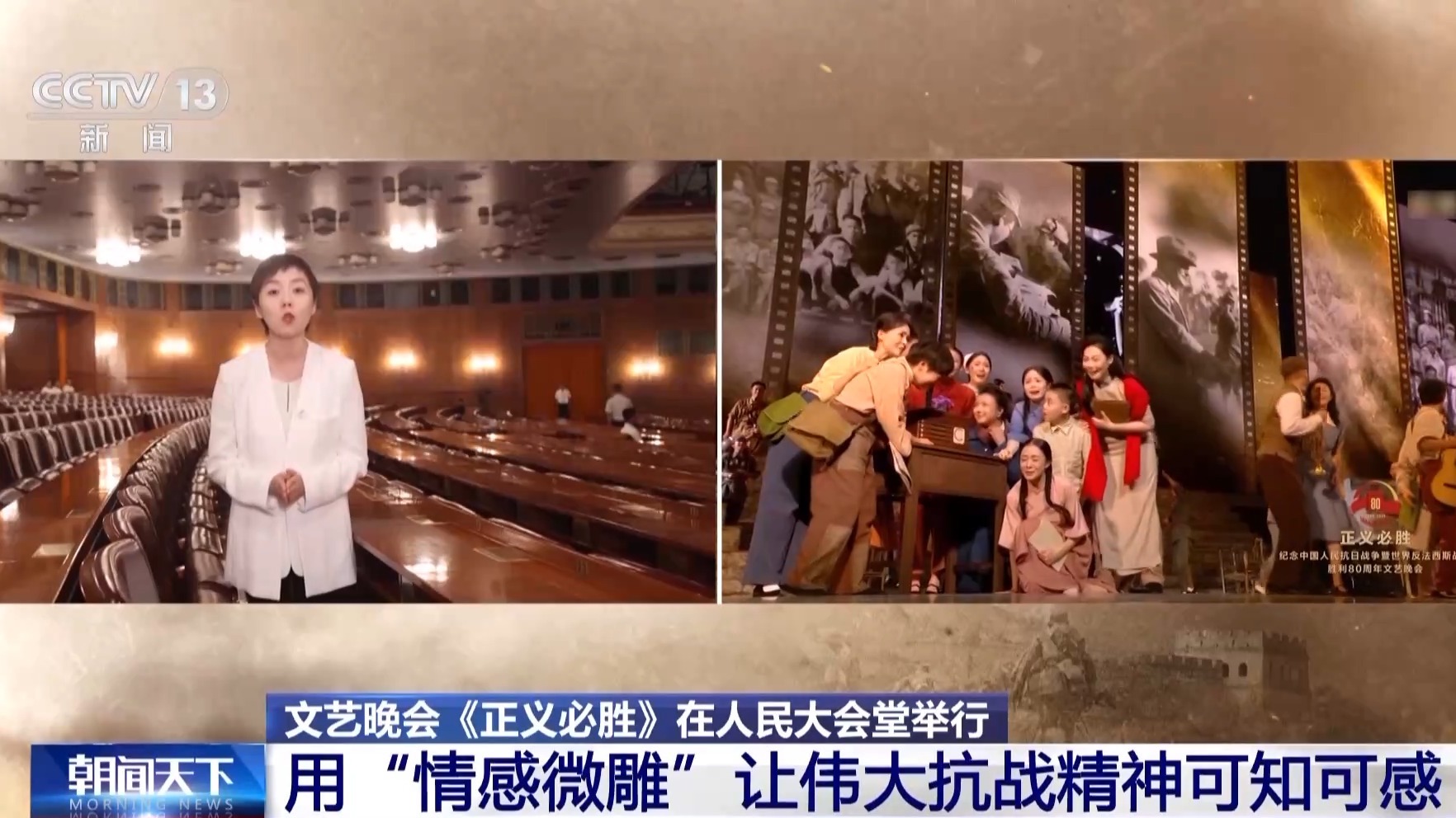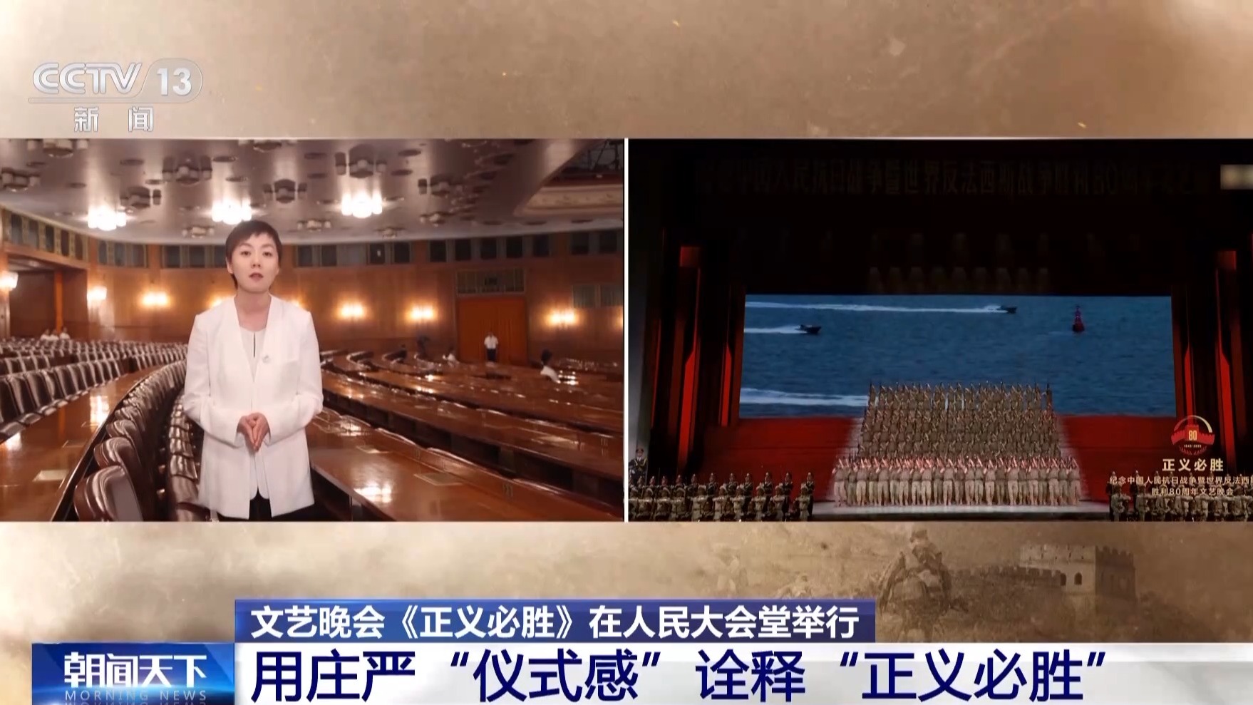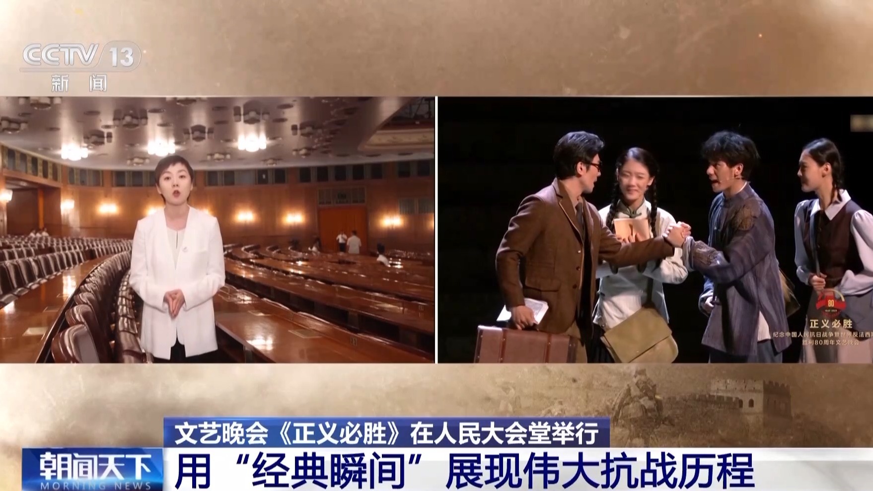 3日晚,紀(jì)念中國人民抗日戰(zhàn)爭暨世界反法西斯戰(zhàn)爭勝利80周年文藝晚會(huì)《正義必勝》在人民大會(huì)堂舉行。