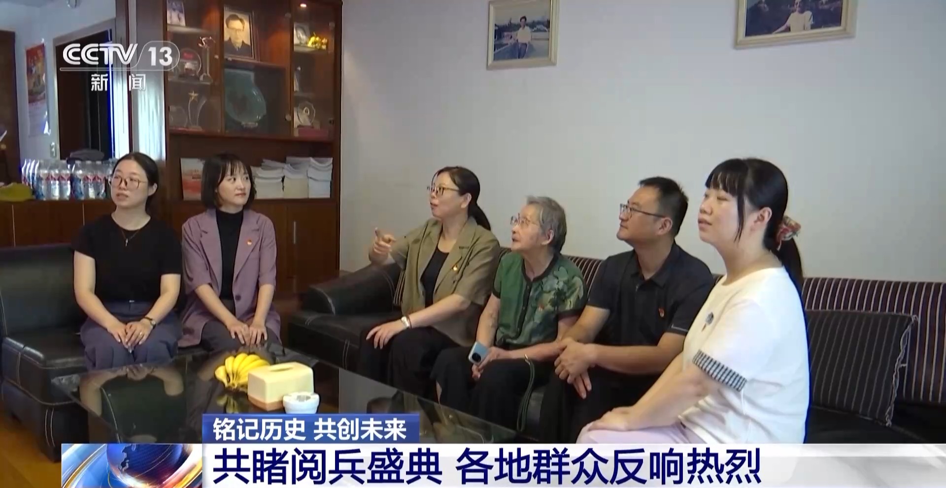 在浙江湖州93歲新四軍老戰(zhàn)士鄭云的家中,社區(qū)工作人員與鄭云老人一起收看大會(huì)直播,鄭云曾先后參加過抗日戰(zhàn)爭、解放戰(zhàn)爭,看完此次閱兵,她感觸頗深。
