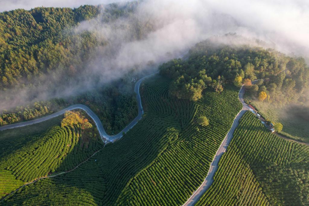 2024年11月8日拍攝的位于安徽省宣城市旌德縣三溪鎮(zhèn)的農村公路(無人機照片)。新華社記者 曹力 攝