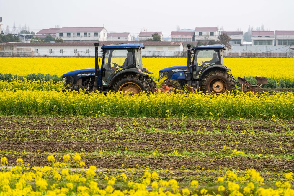 2025年2月25日,在沅江市草尾鎮(zhèn)樂園村,村民操作旋耕機翻耕芥蘭綠肥。新華社記者 陳思汗 攝