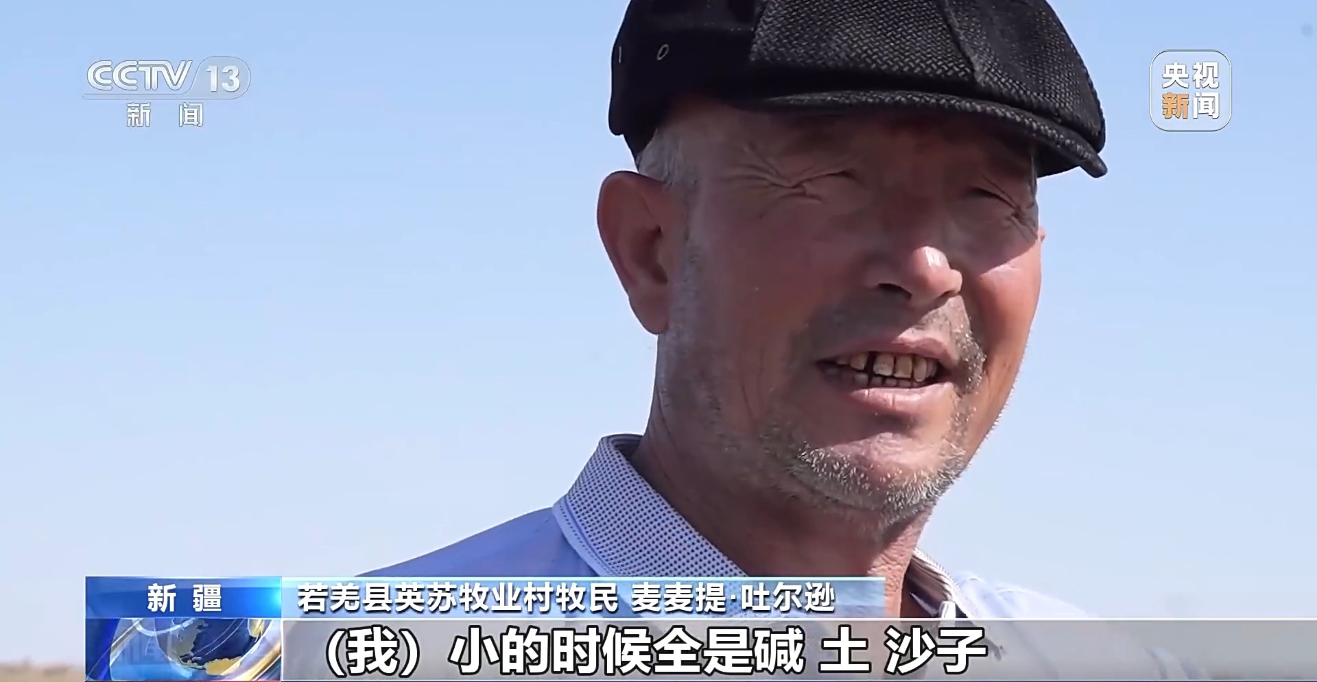 若羌縣英蘇牧業(yè)村牧民 麥麥提·吐?tīng)栠d:我小的時(shí)候全是堿、土、沙子,人走都走不動(dòng)。羊沒(méi)水,也沒(méi)草,死在這個(gè)地方了。