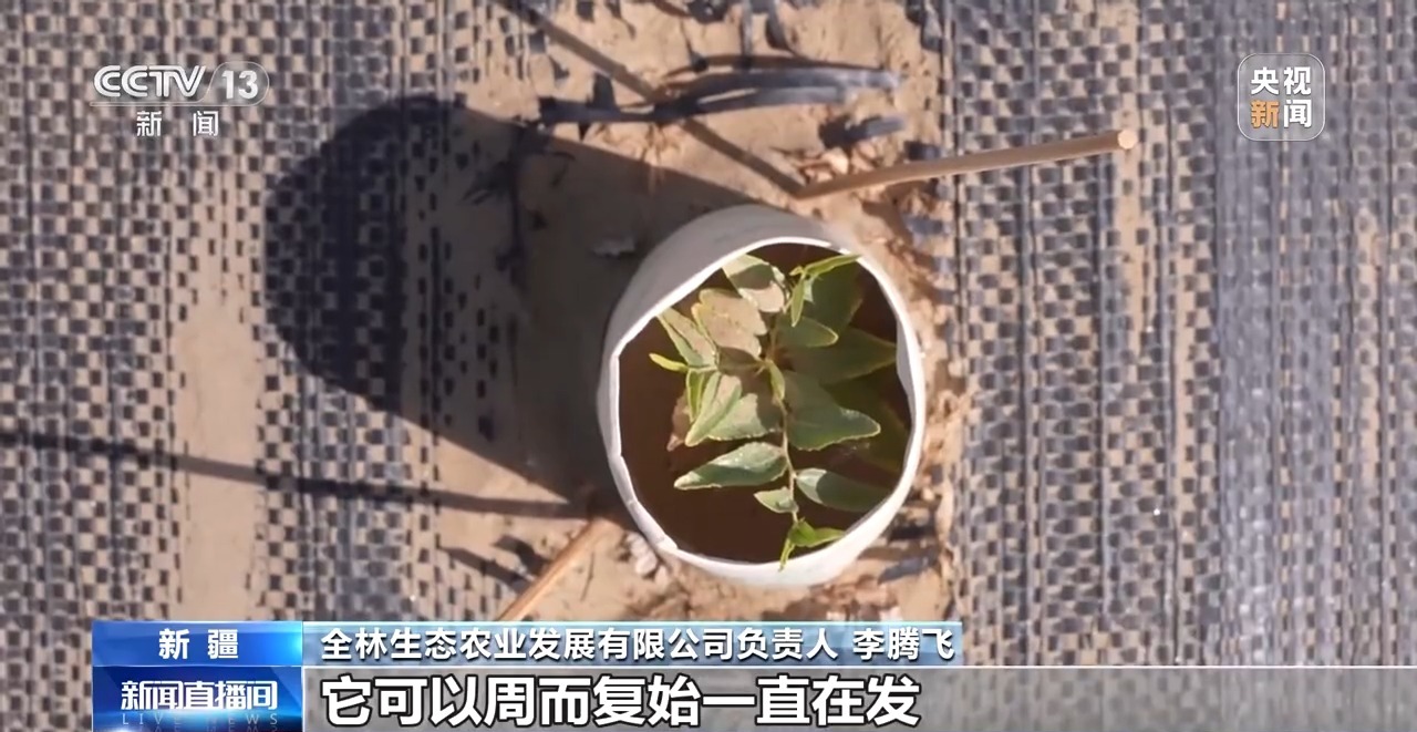 全林生態(tài)農(nóng)業(yè)發(fā)展有限公司負(fù)責(zé)人 李騰飛:沙塵暴這種摧殘之下,它可以周而復(fù)始一直在發(fā),只要它的根系不死,所以說(shuō)我們稱(chēng)它為“苗堅(jiān)強(qiáng)”。