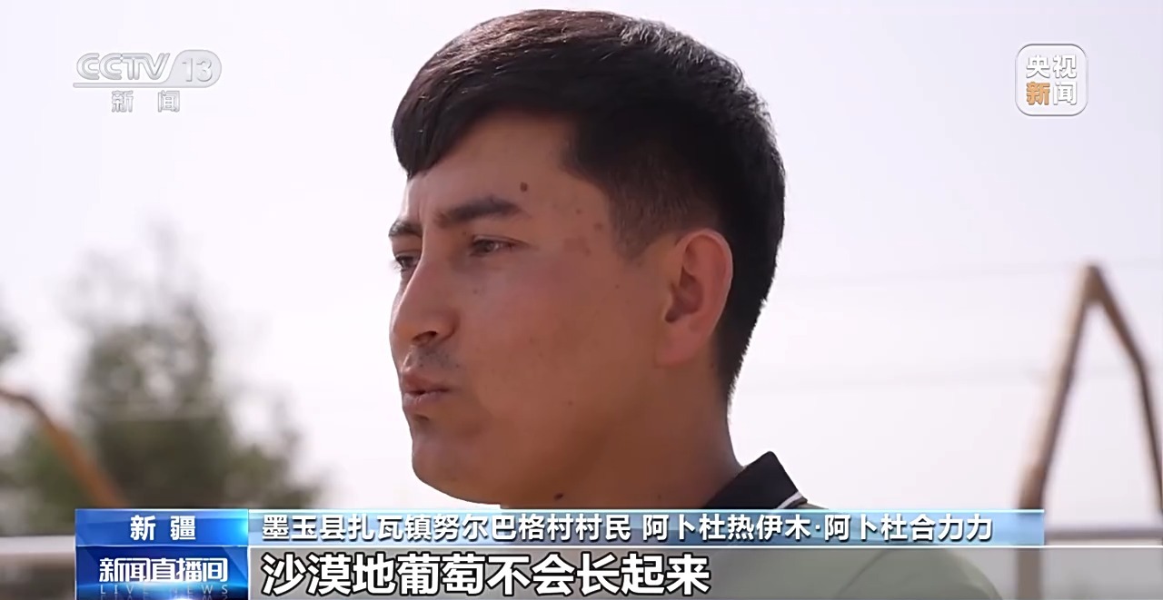 墨玉縣扎瓦鎮(zhèn)努爾巴格村村民 阿卜杜熱伊木·阿卜杜合力力:別人說(shuō)你們是傻子嗎,你們腦子有問(wèn)題,沙漠地葡萄不會(huì)長(zhǎng)起來(lái)。