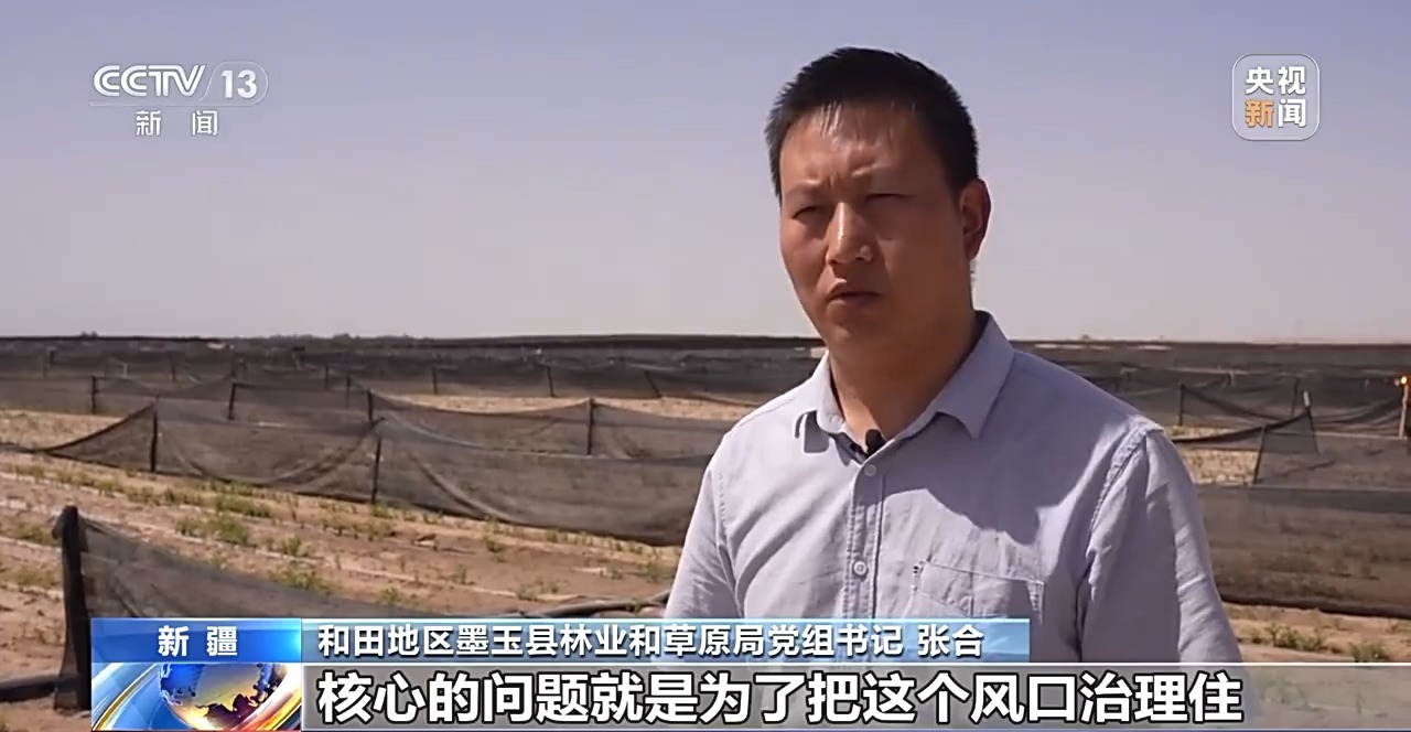 和田地區(qū)墨玉縣林業(yè)和草原局黨組書(shū)記 張合:我們選擇這塊區(qū)域鎖邊加厚,核心的問(wèn)題就是為了把這個(gè)風(fēng)口治理住,減少風(fēng)沙對(duì)綠洲內(nèi)部的侵蝕。