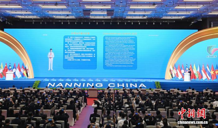 9月17日,第22屆東博會(huì)開(kāi)幕。會(huì)議現(xiàn)場(chǎng),AI生成了東博會(huì)開(kāi)幕式紀(jì)要。中新社記者 蔣雪林 攝