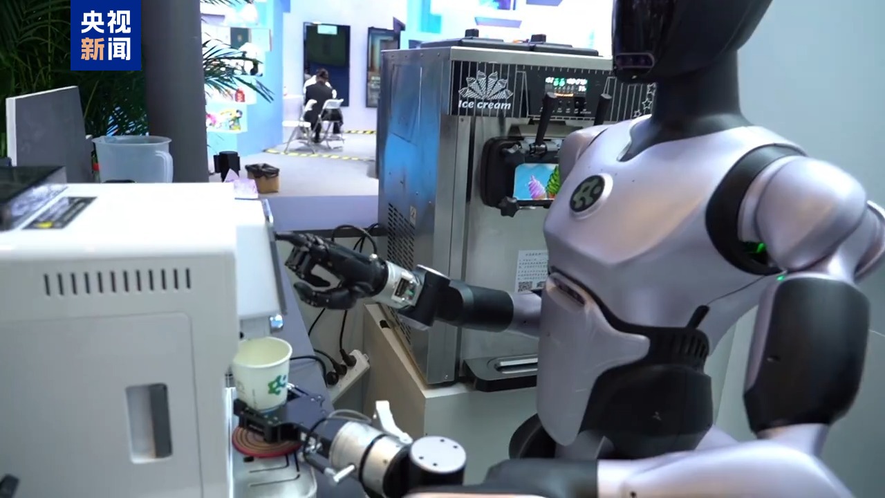 逛累了,還可以來(lái)一杯由機(jī)器人制作的咖啡,聽(tīng)一首由機(jī)器人賽博鼓手奏樂(lè)的廣西民歌《大地飛歌》。
