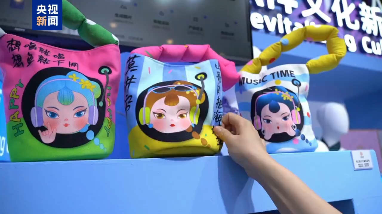 總臺(tái)央視記者 張歆:在人工智能專(zhuān)館,除了有炫酷的機(jī)器人,我們可以看到,這個(gè)水桶包就是由人工智能提供靈感的,以劉三姐為IP形象的文創(chuàng)產(chǎn)品。那么這個(gè)水桶包還引用了劉三姐山歌的內(nèi)容,“山歌能把海填平”。