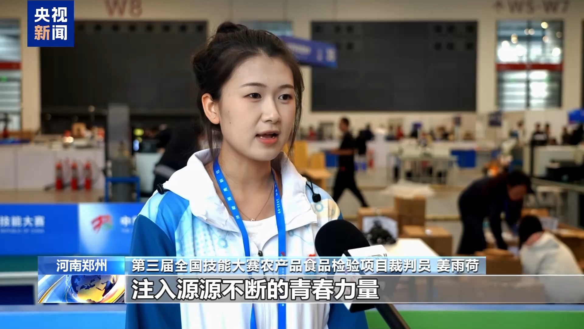 第三屆全國技能大賽農(nóng)產(chǎn)品食品檢驗(yàn)項(xiàng)目裁判員 姜雨荷:我們不僅是職業(yè)教育的受益者,更是技能強(qiáng)國的建設(shè)者,我希望會(huì)有更多像我一樣的青年人,投身職業(yè)教育,為我們技能強(qiáng)國的建設(shè),注入源源不斷的青春力量。