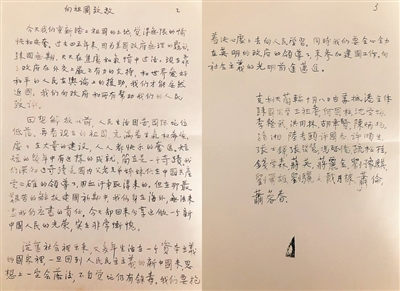 對于這個新局勢,我抱極大的信心,所以我放棄入籍了……時至今日呵!天亮了!我們中華民族百多年來受外人所旋(施)的奇恥大辱,用我們勇士的血來洗滌凈盡了!我們有了那群受盡人間所有的苦難的智識者群來領(lǐng)導(dǎo)建立人民主權(quán),建立一個新的畫(劃)時代的自由獨(dú)立的國家。