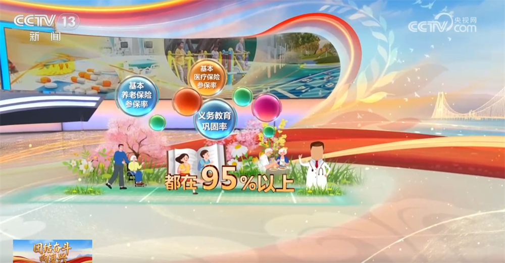 這五年,經(jīng)濟發(fā)展、科技進步的成果實打?qū)嵉剞D(zhuǎn)化為群眾的獲得感和幸福感。我國已建成全球規(guī)模最大的教育體系、社會保障體系、醫(yī)療衛(wèi)生體系,義務教育鞏固率和基本養(yǎng)老保險、基本醫(yī)療保險參保率都在95%以上。