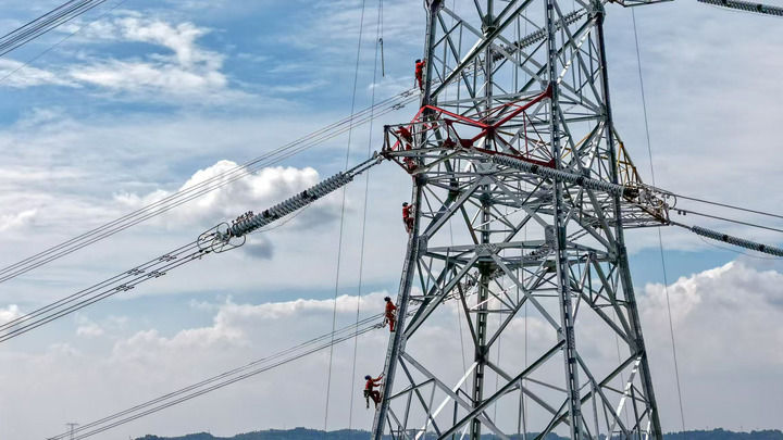 在“疆電入渝”特高壓工程現(xiàn)場,配套工程涉及多條線路的新建及改造。重慶送變電公司項目經(jīng)理汪華榮和同事們剛順利完成嘉陵江跨越段導地線架設,“國慶期間,我們要確保這條能源大動脈建設順利推進。”工人們說。