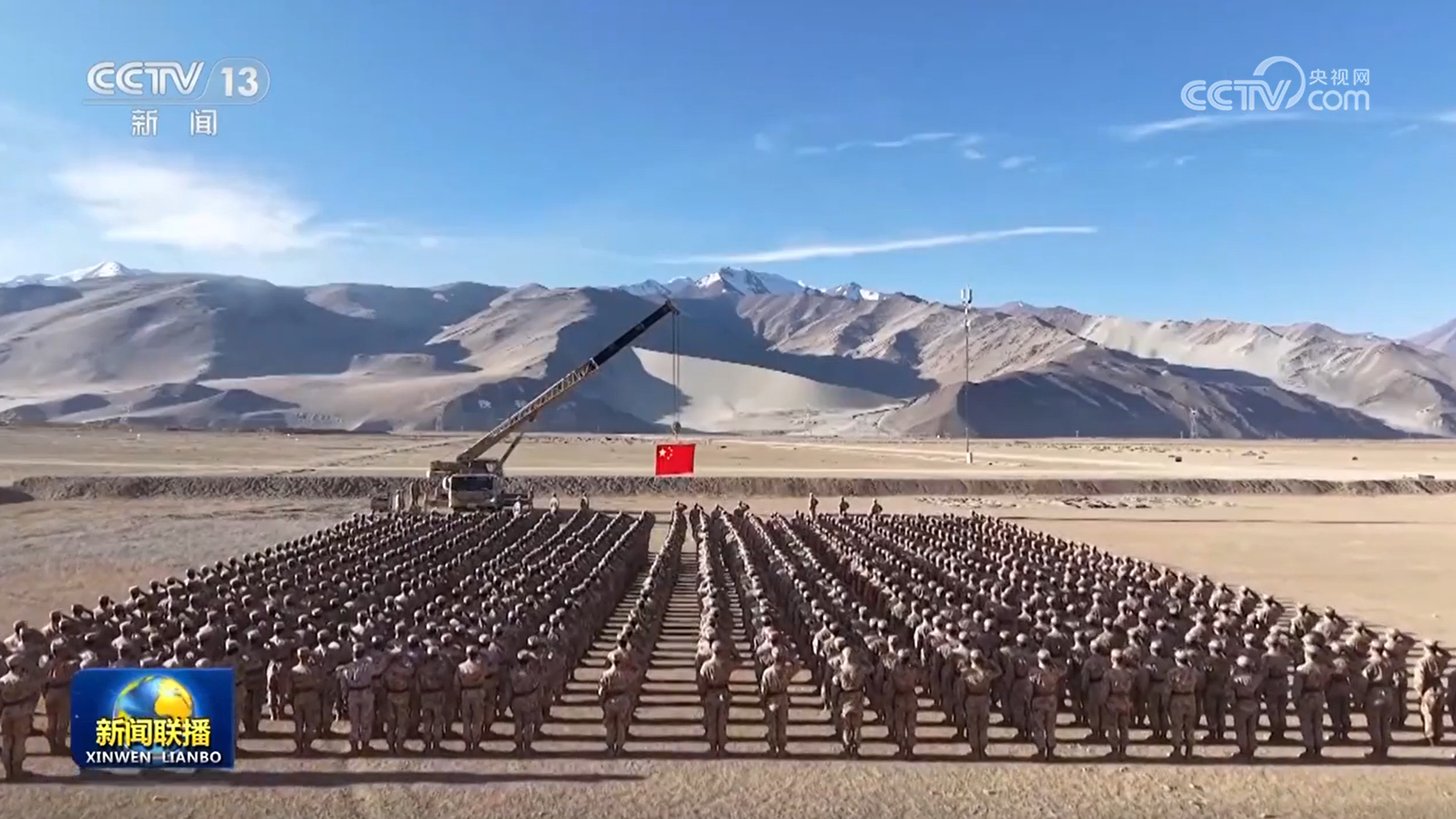 在東極列島最東端的海軍某觀通站,在“西陲第一哨”斯姆哈納邊防連,在北緯53°的北極哨所,在“南海第一哨”華陽礁,在全軍海拔最高的駐兵點,從雪域高原、戈壁大漠到萬里海疆,共和國衛(wèi)士們升起一面面五星紅旗,為祖國母親獻上祝福。
