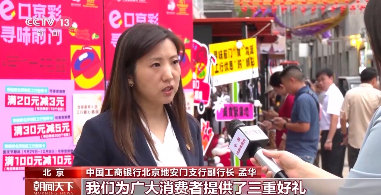 中國(guó)工商銀行北京地安門(mén)支行副行長(zhǎng) 孟華:我們?yōu)閺V大消費(fèi)者提供了三重好禮,除了傳統(tǒng)的消費(fèi)滿減活動(dòng)以外,我們還疊加了數(shù)字人民幣的優(yōu)惠支付,同時(shí)還設(shè)計(jì)了數(shù)字人民幣的打卡活動(dòng)。