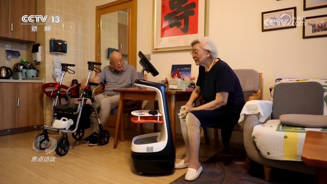 在深圳一家養(yǎng)老院,健康檢測機器人接到指令,就自己導航到老人身邊,提醒她測血壓。