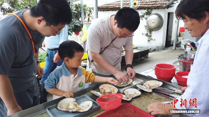 2025年6月,家長與孩子正在進(jìn)行開蚌取珠體驗(yàn)。曹丹 攝