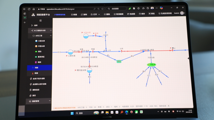 在河海大學(xué)水工程調(diào)度團(tuán)隊鐘平安教授的帶領(lǐng)下,朱非林參與了面向三峽工程這一國之重器的重大科研攻關(guān)。團(tuán)隊主要在"快"和"準(zhǔn)"兩個字上下功夫。過去,為一個流域搭建防汛調(diào)度模型和系統(tǒng),需要工程師花費幾天甚至幾個月手動創(chuàng)建,如同手工編織一張巨大的網(wǎng)。朱非林團(tuán)隊開發(fā)了一套智能在線建模系統(tǒng),像搭"數(shù)字樂高"一樣,通過簡單的鼠標(biāo)拖拉拽操作,就能在幾分鐘內(nèi)建立起全國任意流域或區(qū)域的調(diào)度系統(tǒng)和模型,極大提升了防汛決策的響應(yīng)速度,為洪水調(diào)度贏得了寶貴的黃金時間。