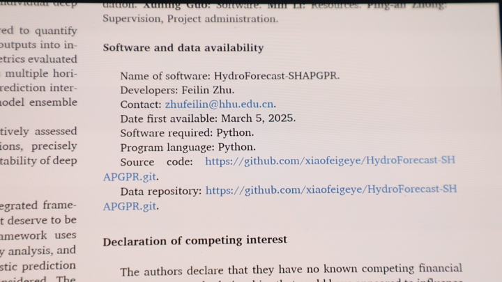 朱非林在學(xué)術(shù)研究中有一個特別的堅持——公開分享自己的代碼。早在2017年,他就將防洪決策的模型代碼公開,美國、印度及國內(nèi)的學(xué)者紛紛與他聯(lián)系,在他開發(fā)的模型基礎(chǔ)上進(jìn)行深化研究,推動了整個方向的發(fā)展。"水利行業(yè)是造福人民的事業(yè),不應(yīng)該有圍墻。"朱非林的想法很簡單,一項技術(shù)只有被更多人使用、檢驗和完善,才能發(fā)揮更大價值,更快推動整個行業(yè)進(jìn)步。個人的工作如果能給其他研究者或工程單位帶來啟發(fā)和幫助,其意義就遠(yuǎn)超一篇論文本身。
