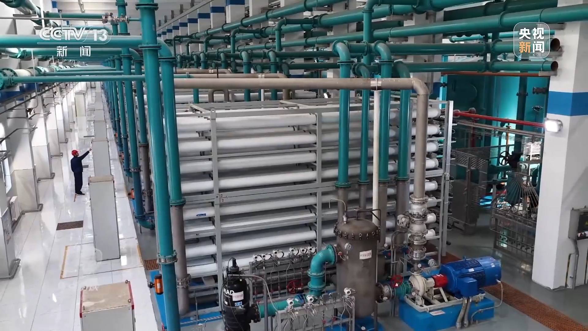 在依海而建的天津南港工業(yè)區(qū)內(nèi),有著目前全國單機(jī)規(guī)模最大的反滲透海水淡化和綜合利用一體化項目。5條生產(chǎn)線,日產(chǎn)量達(dá)15萬噸,可以滿足68萬城鎮(zhèn)居民的單日用水量,全年可替代、節(jié)約淡水資源超過5000萬噸。