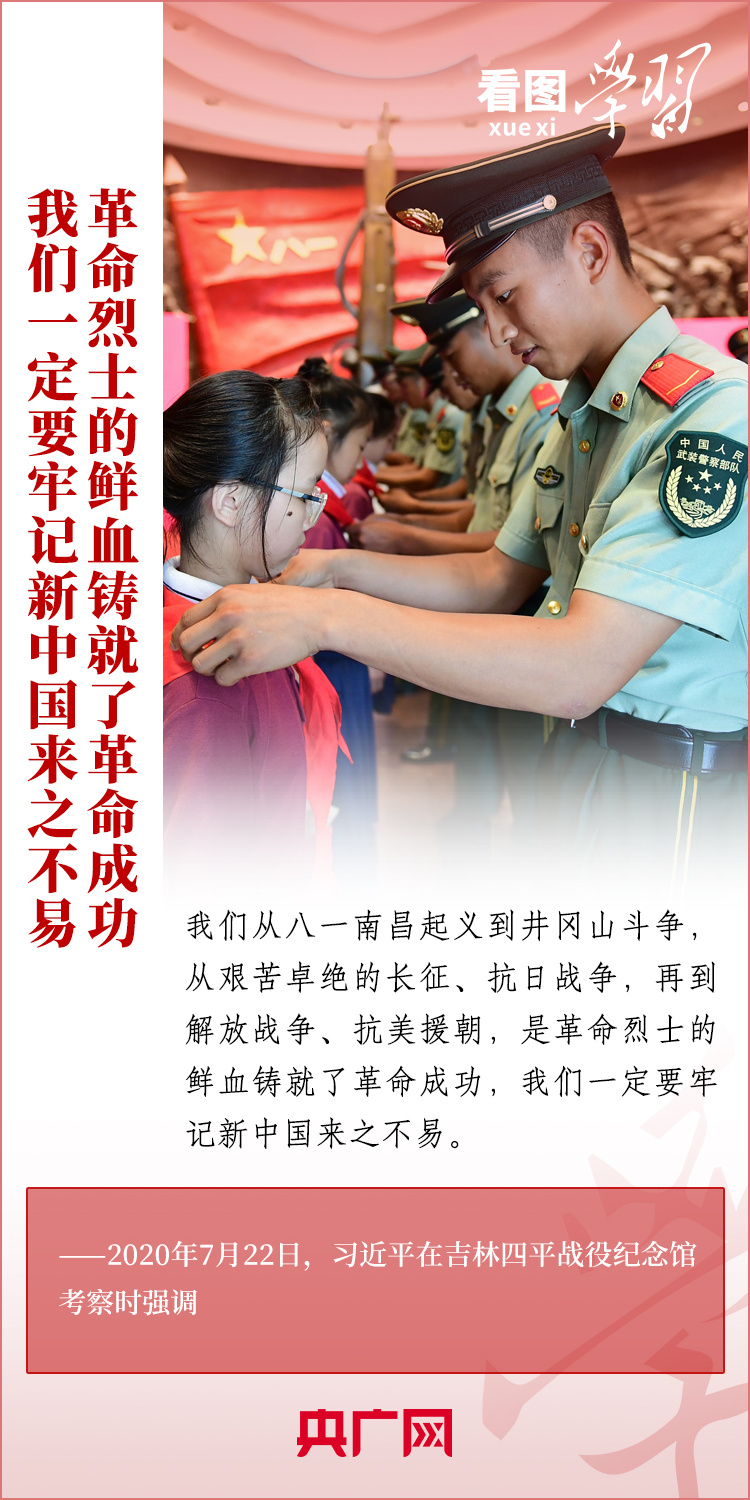 緬懷革命前輩,告慰先烈英靈。黨的十八大以來,習(xí)近平總書記多次在重大活動、赴地方調(diào)研時,或深情追憶革命前輩、英雄烈士,或向革命紀(jì)念場館禮敬鮮花、關(guān)心看望英烈親屬??倳浢銊畲蠹乙^承革命先烈遺志,把他們流血犧牲打下的紅色江山守護(hù)好、建設(shè)好,以實現(xiàn)中華民族偉大復(fù)興來告慰革命前輩和先烈。