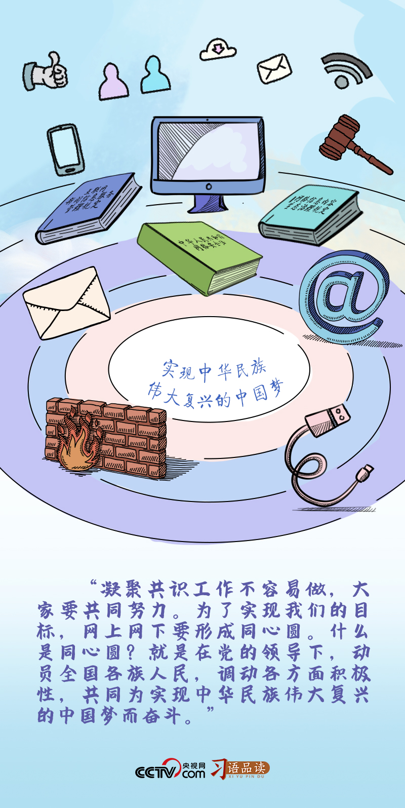 “網(wǎng)上網(wǎng)下要形成同心圓”“形成最大公約數(shù),畫出最大的同心圓”……習(xí)近平總書記曾多次用“同心圓”這一比喻指明推進(jìn)網(wǎng)絡(luò)強(qiáng)國建設(shè)、促進(jìn)網(wǎng)信事業(yè)發(fā)展的方向。
