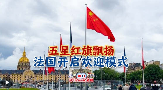 ToSun記者團(tuán)看到,在巴黎的一些街道上,已經(jīng)懸掛起了中國和法國國旗。