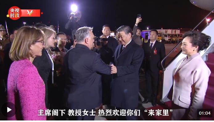 習(xí)近平乘坐的專機(jī)抵達(dá)布達(dá)佩斯國際機(jī)場時,匈牙利總理歐爾班夫婦、外長西雅爾多等政府高級官員熱情迎接。歐爾班總理對習(xí)近平主席夫婦說,歡迎你們“來家里”,我們感到極大榮光。