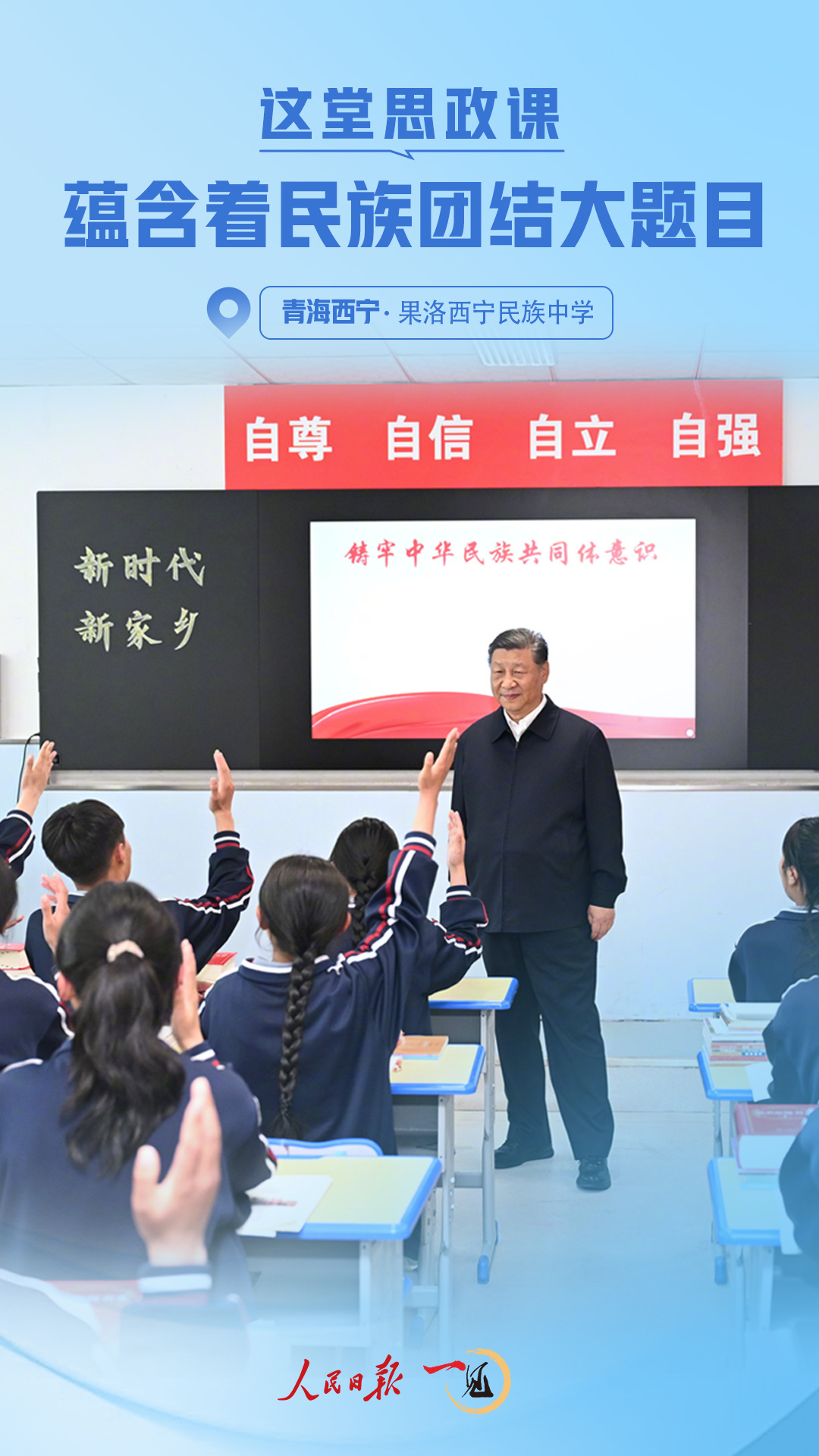 西寧城北,元朔山麓,藍(lán)天白云掩映下的果洛西寧民族中學(xué)綠意蔥蘢。6月18日,正在青海省西寧市考察的習(xí)近平總書記來(lái)到這里并觀摩了一堂思政課??倳泴?duì)思政課歷來(lái)很重視——這是落實(shí)立德樹人根本任務(wù)的關(guān)鍵課程,是培養(yǎng)社會(huì)主義建設(shè)者和接班人的重要保障。
