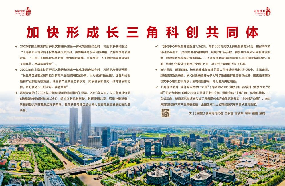 最新發(fā)布的《2024長三角區(qū)域協(xié)同創(chuàng)新指數(shù)》顯示,2018年以來,長三角區(qū)域協(xié)同創(chuàng)新指數(shù)年均增幅達(dá)9.26%,通過體制機(jī)制創(chuàng)新、科研資源共享、強(qiáng)鏈補(bǔ)鏈延鏈,科技創(chuàng)新共同體建設(shè)邁向新階段,驅(qū)動長三角地區(qū)加快成為全國高質(zhì)量發(fā)展的強(qiáng)勁增長極。