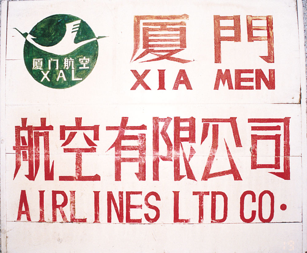 廈門航空一屆一次董事會在中國民用航空局辦公大樓召開,標志著廈航正式成立。這是當時職工自制的公司牌匾,選取了廈門最具代表性的鳥類