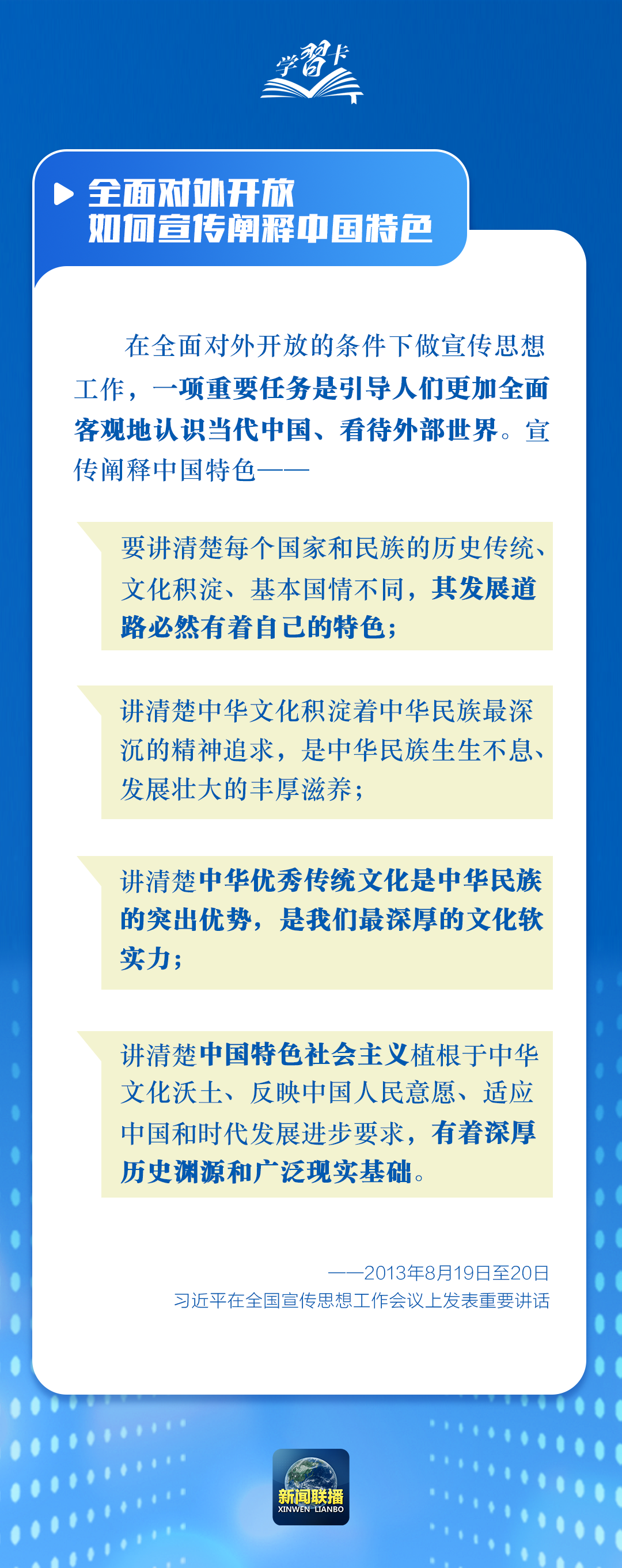 習(xí)近平總書記高度重視國(guó)際傳播能力建設(shè),指出當(dāng)前外宣工作處于歷史最好時(shí)期,同時(shí)也面臨最大壓力,強(qiáng)調(diào)要全面加強(qiáng)和改進(jìn)國(guó)際傳播工作,深化文明交流互鑒,形成同我國(guó)綜合國(guó)力和國(guó)際地位相匹配的國(guó)際話語(yǔ)權(quán),增強(qiáng)中華文明傳播力影響力。一起學(xué)習(xí)↓