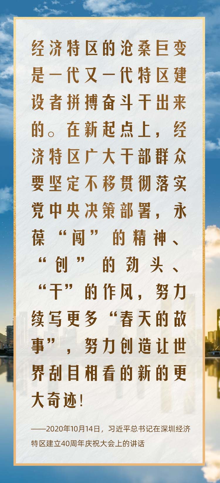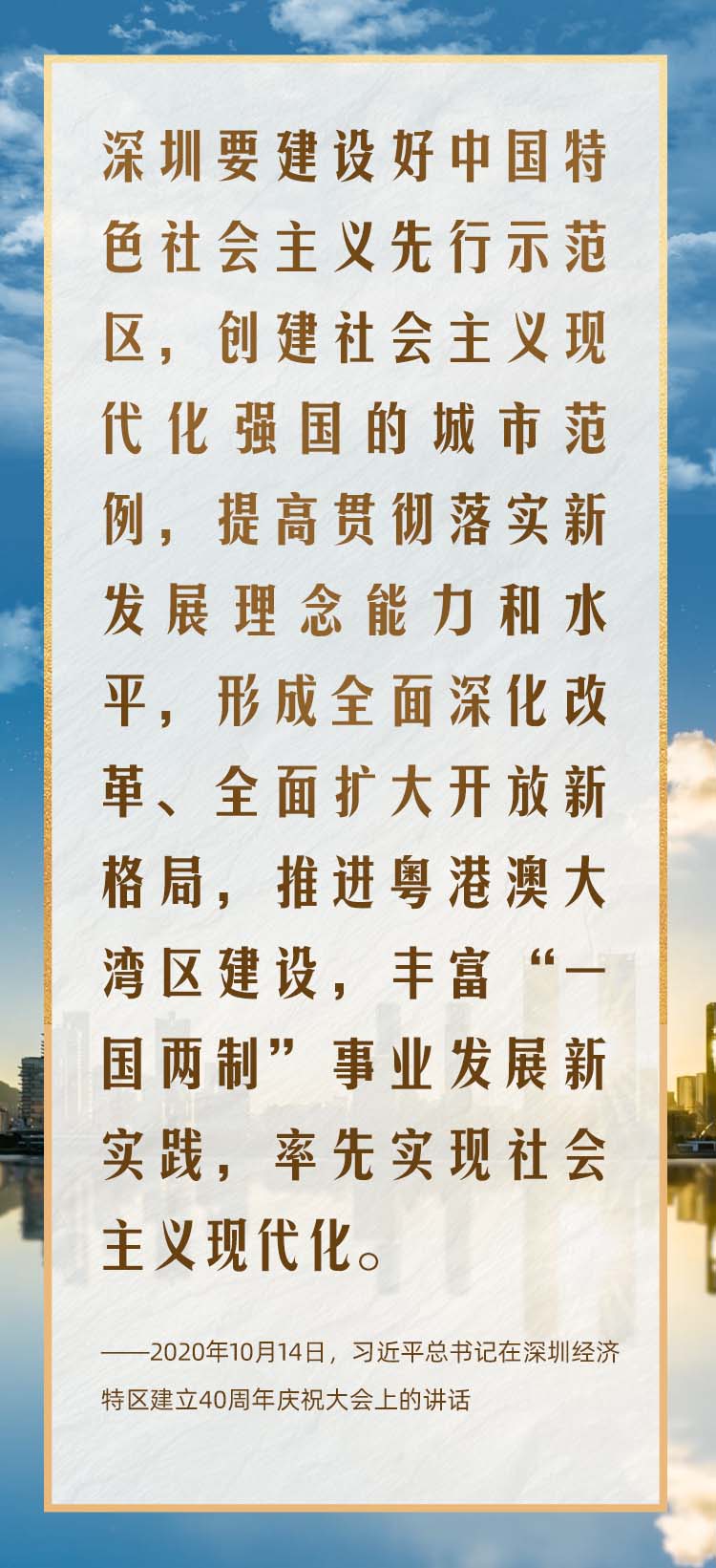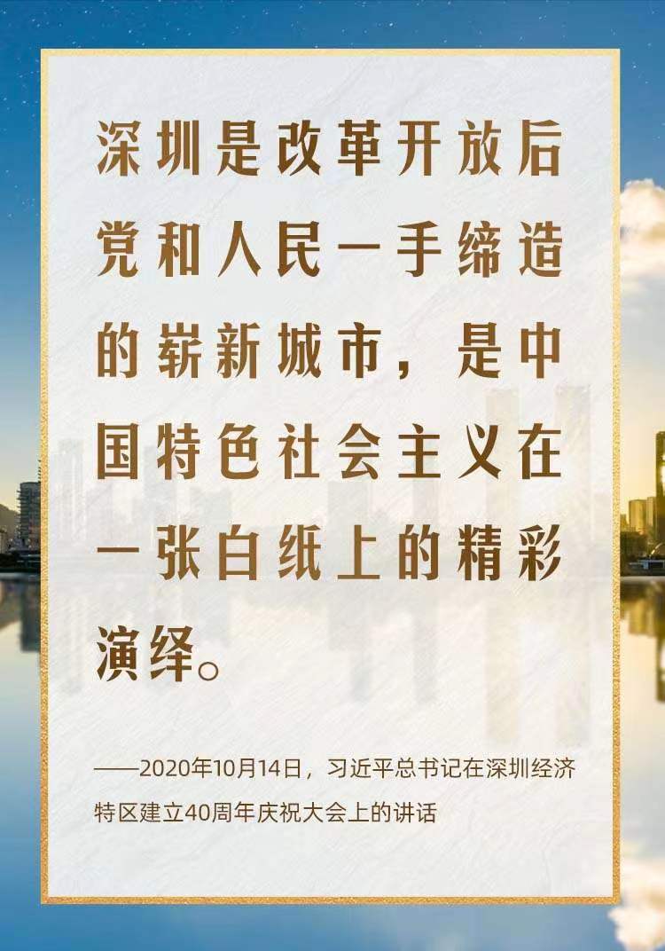 2020年10月,在慶祝深圳經(jīng)濟(jì)特區(qū)建立40周年之際,習(xí)近平總書記又一次來(lái)到這里,出席慶祝大會(huì),強(qiáng)調(diào)改革不停頓、開放不止步,在更高起點(diǎn)上推進(jìn)改革開放,推動(dòng)經(jīng)濟(jì)特區(qū)工作開創(chuàng)新局面。