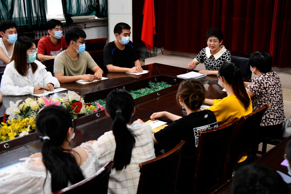 2020年6月16日,在山東濰坊學院法學院,全國人大代表高明芹在宣講《民法典》相關內(nèi)容。 新華社記者 郭緒雷 攝