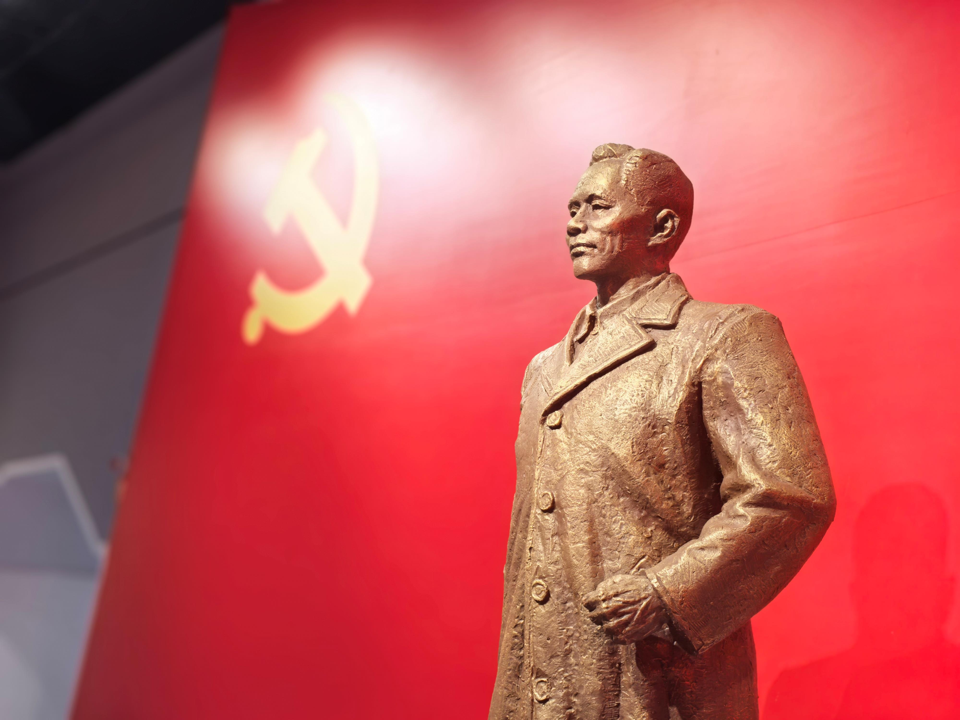 紀(jì)念館里的谷文昌雕像。(總臺央廣記者潘毅拍攝)