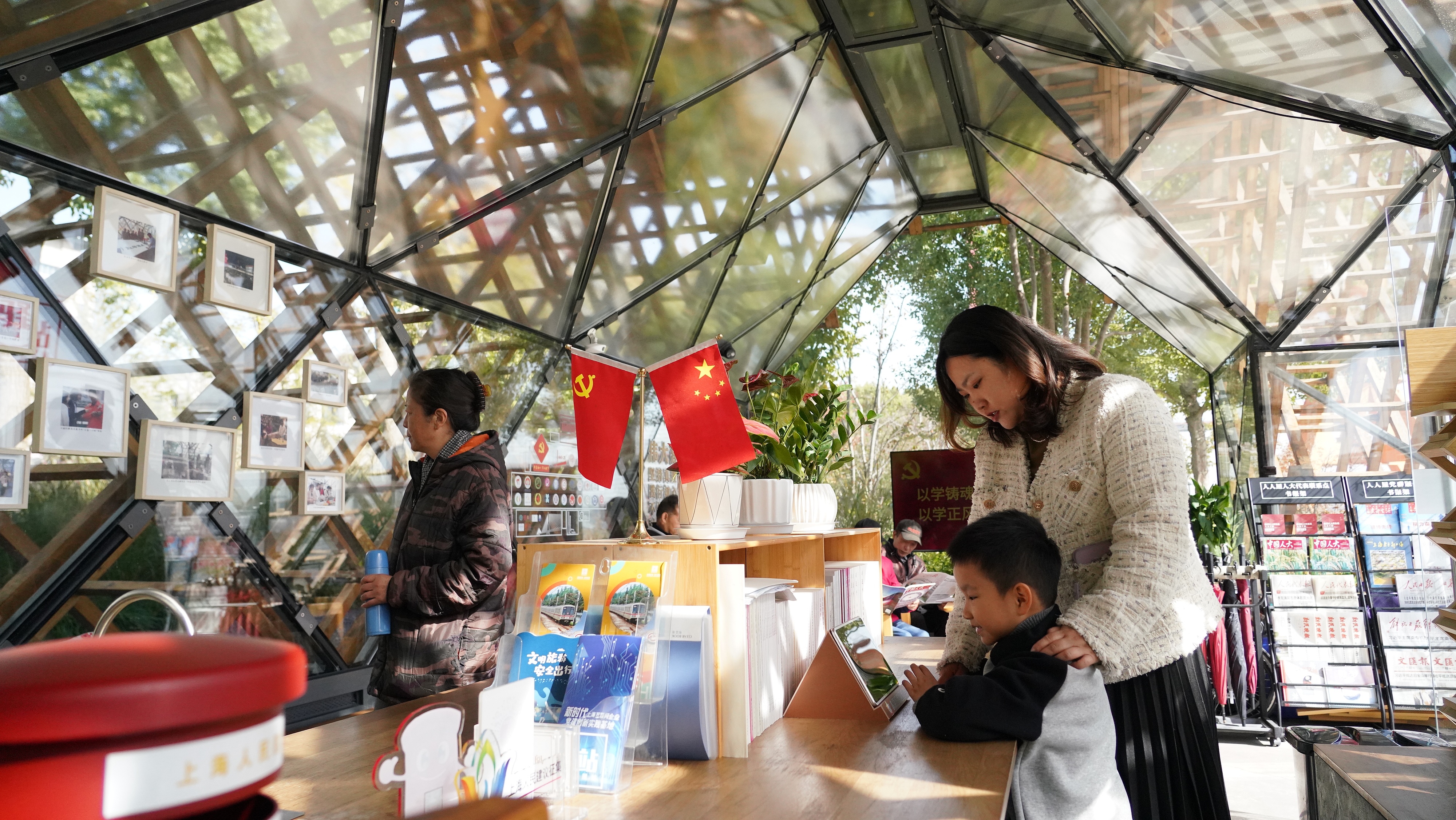 △ 2023年11月17日,上海市民正在位于楊浦濱江岸線的“人人屋”黨群服務(wù)站參觀。