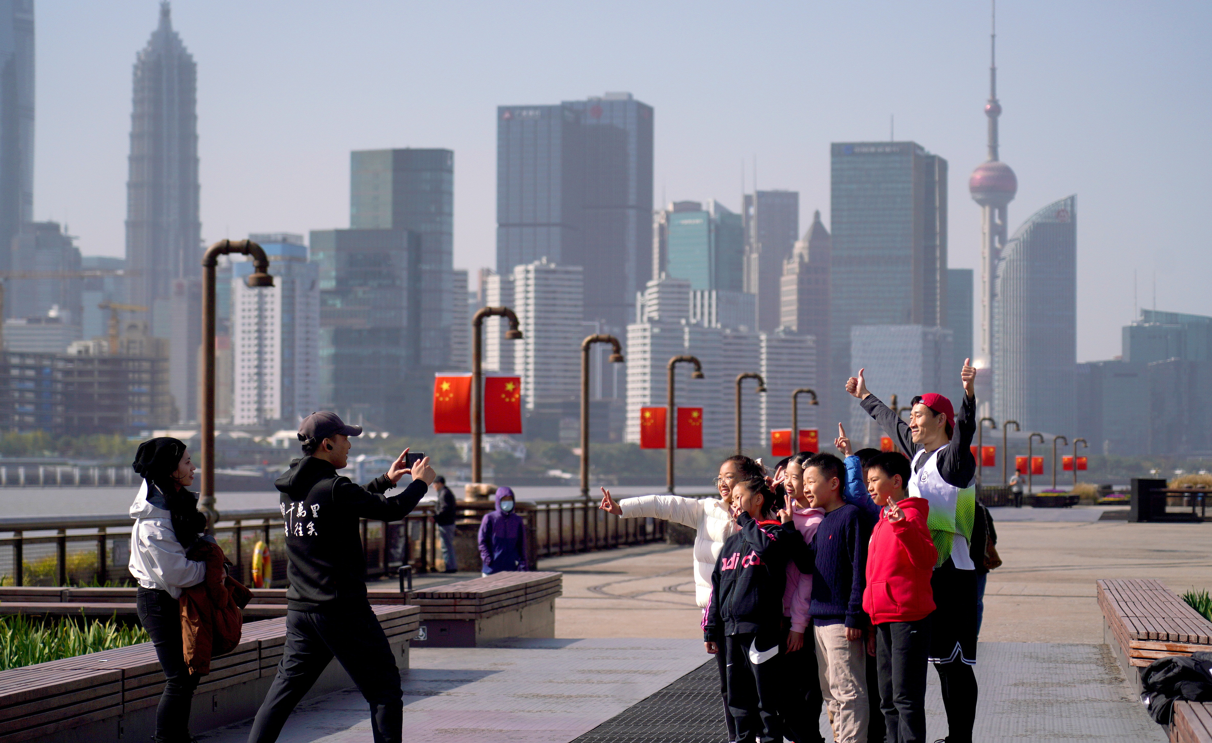 △ 2023年11月17日,市民游客在上海楊浦濱江岸線觀光拍照。
