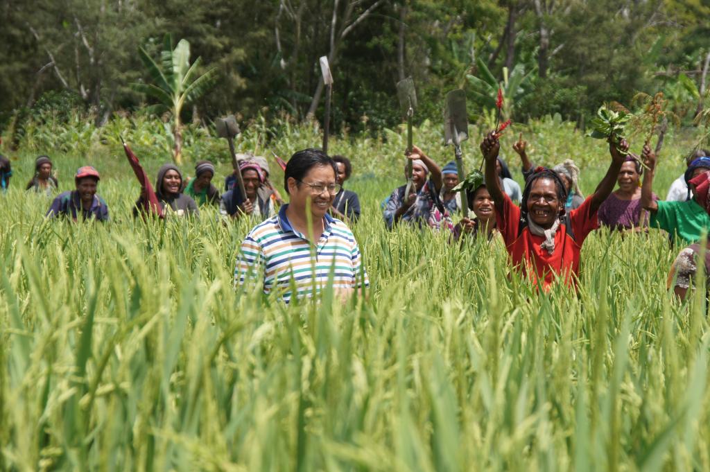 2019年12月17日,首次參與中國援巴新旱稻項(xiàng)目的巴布亞新幾內(nèi)亞農(nóng)戶,看到自己種植的旱稻長勢喜人。