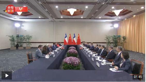 當?shù)貢r間11月15日,國家主席習(xí)近平在利馬出席亞太經(jīng)合組織領(lǐng)導(dǎo)人非正式會議期間會見智利總統(tǒng)博里奇。
