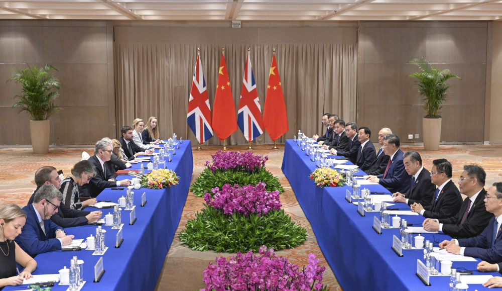習(xí)近平指出,當(dāng)前世界進(jìn)入新的動(dòng)蕩變革期。中英作為聯(lián)合國(guó)安理會(huì)常任理事國(guó)和世界主要經(jīng)濟(jì)體,既肩負(fù)推動(dòng)各自國(guó)家發(fā)展的重任,也承擔(dān)應(yīng)對(duì)全球性挑戰(zhàn)的責(zé)任。雙方應(yīng)該秉持戰(zhàn)略伙伴定位,堅(jiān)持相互尊重、開(kāi)放合作、交流互鑒,實(shí)現(xiàn)互利共贏,共同書(shū)寫(xiě)中英關(guān)系健康穩(wěn)定發(fā)展的下一個(gè)篇章。