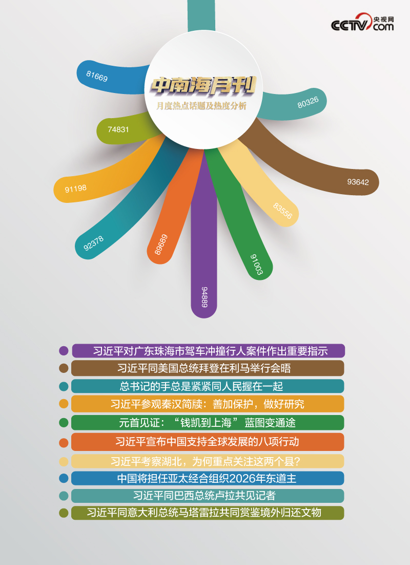 央視網(wǎng)“智聞”系統(tǒng)提取分析2024年11月全網(wǎng)時(shí)政新聞熱點(diǎn),其中總書(shū)記與人民親切互動(dòng)、世界專(zhuān)注傾聽(tīng)中國(guó)方案等“時(shí)政微鏡頭”吸引全網(wǎng)關(guān)注。