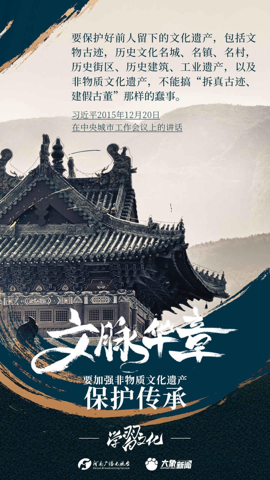 非物質(zhì)文化遺產(chǎn)是中華優(yōu)秀傳統(tǒng)文化的重要組成部分,是中華文明綿延傳承的生動見證,是我國各族人民寶貴的精神財(cái)富。習(xí)近平總書記十分關(guān)心非物質(zhì)文化遺產(chǎn)的保護(hù)傳承,多次強(qiáng)調(diào)“要扎實(shí)做好非物質(zhì)文化遺產(chǎn)的系統(tǒng)性保護(hù)”“培養(yǎng)好傳承人”等。大象新聞為您梳理,邀您一起學(xué)習(xí)、領(lǐng)悟、踐行。