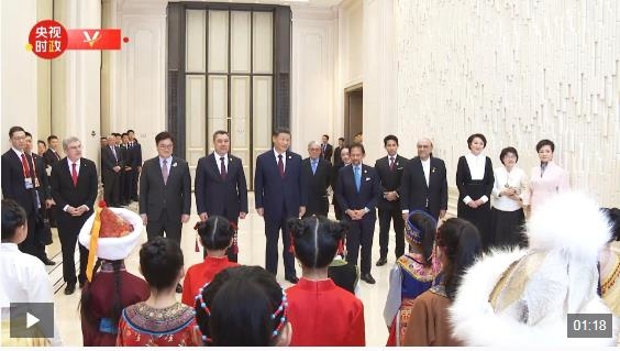 歡迎宴會(huì)開始前,40名身著中外民族服裝的少年兒童唱起優(yōu)美的黑龍江民歌《烏蘇里船歌》,熱烈歡迎國際貴賓。