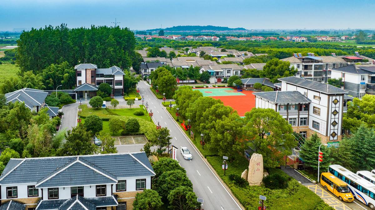 鳥瞰鄂州市峒山村,村容整潔、綠樹成蔭。(湖北日?qǐng)?bào)全媒記者 薛婷 攝)