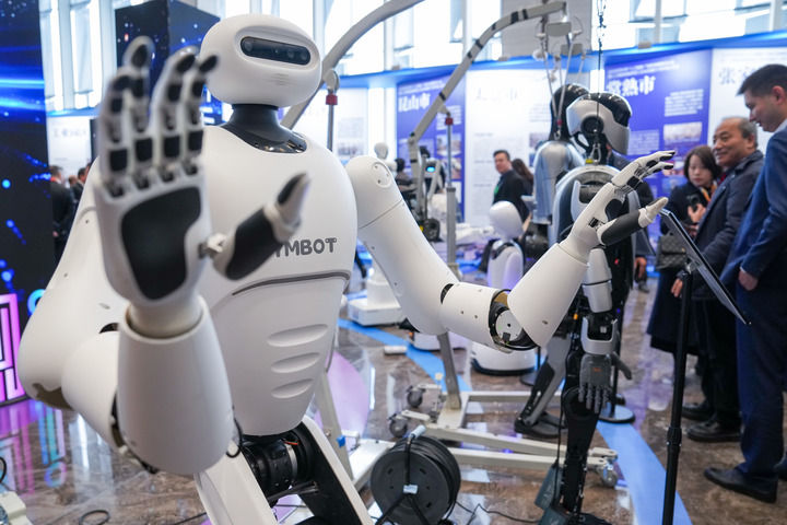 2025年2月14日在2025年蘇州市“人工智能+”創(chuàng)新發(fā)展推進(jìn)大會暨人工智能賦能新型工業(yè)化深度行(蘇州站)活動(dòng)現(xiàn)場拍攝的人形機(jī)器人。新華社記者 李博 攝