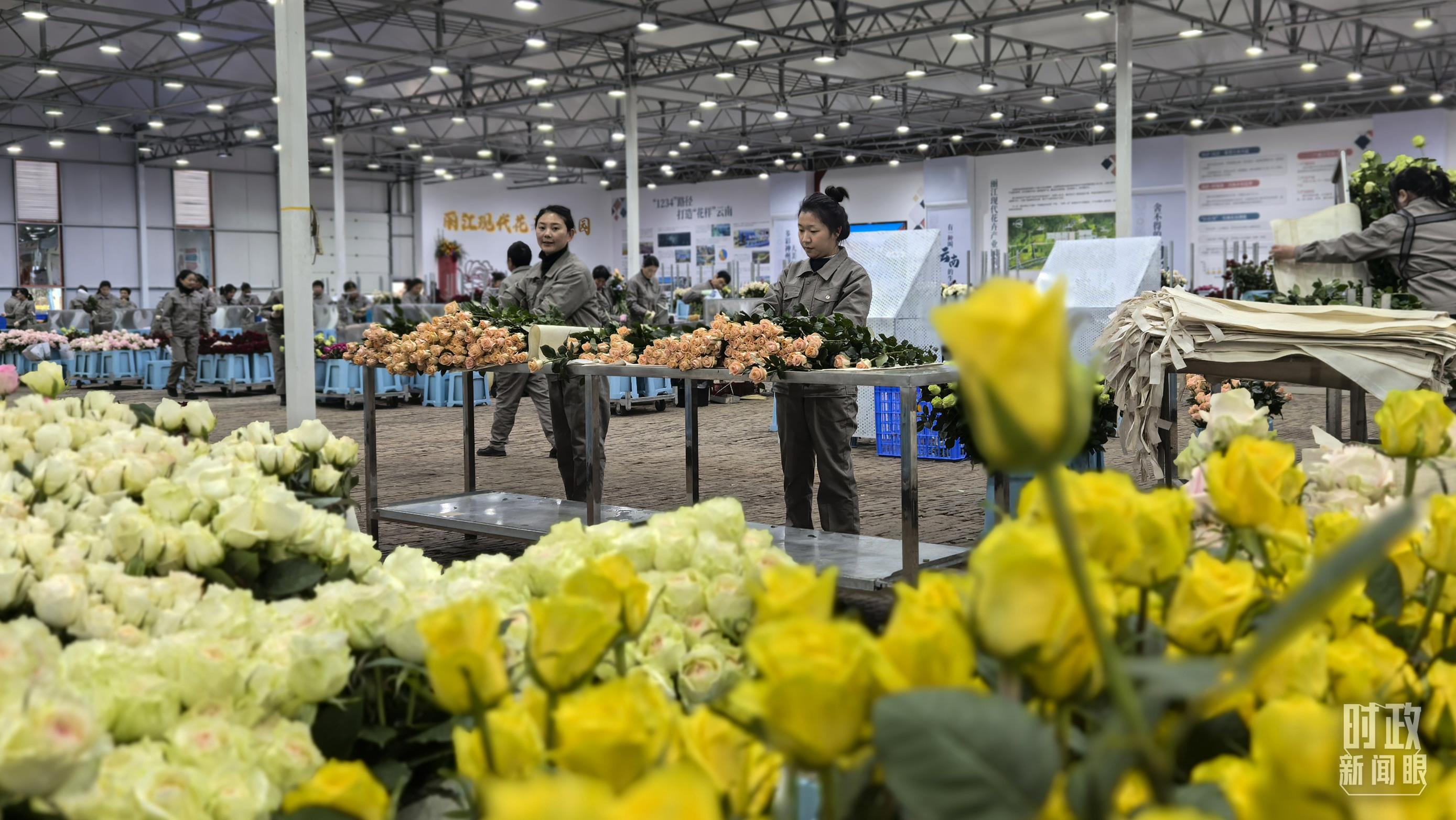 工人正在對(duì)采摘下來的鮮花進(jìn)行整理、分類。(總臺(tái)央視記者邢彬拍攝)