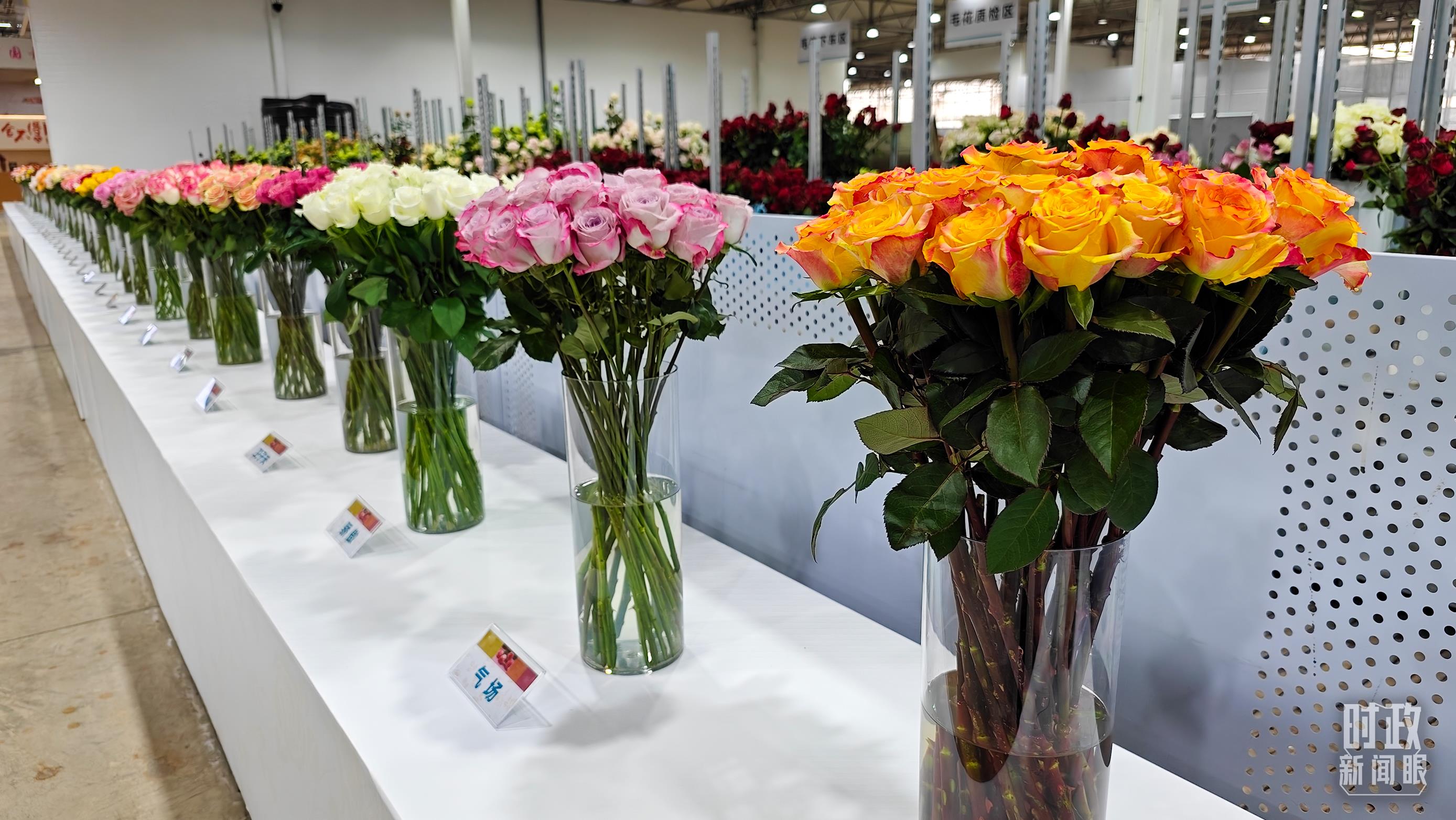 展廳里展示的鮮花品種。(總臺(tái)央視記者趙東辰拍攝)