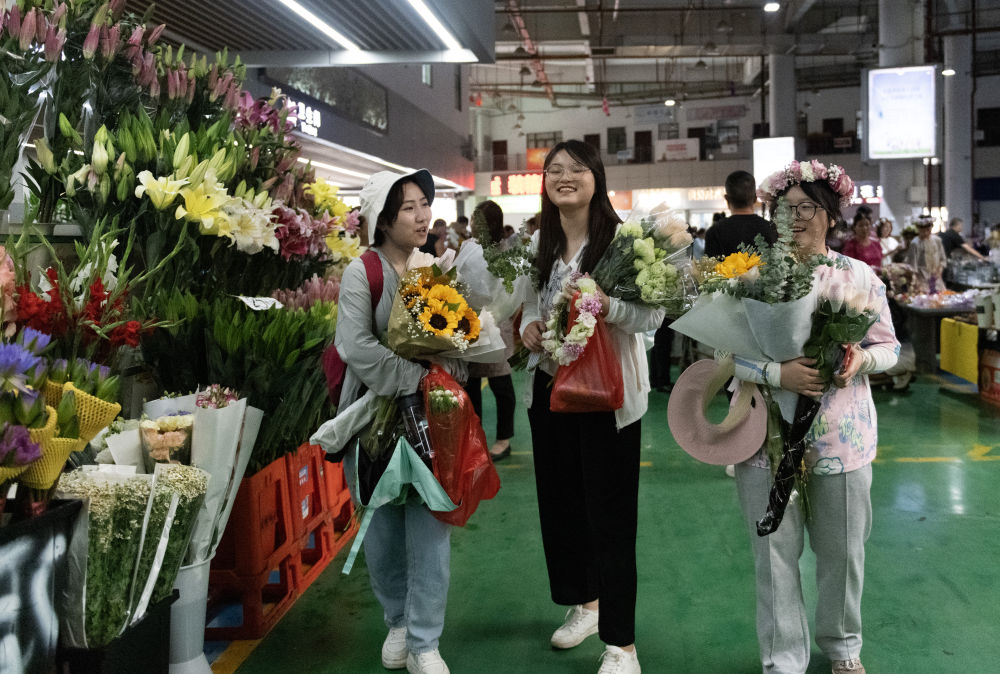 2023年7月13日,游客在昆明斗南花卉市場(chǎng)內(nèi)購(gòu)買(mǎi)鮮花。