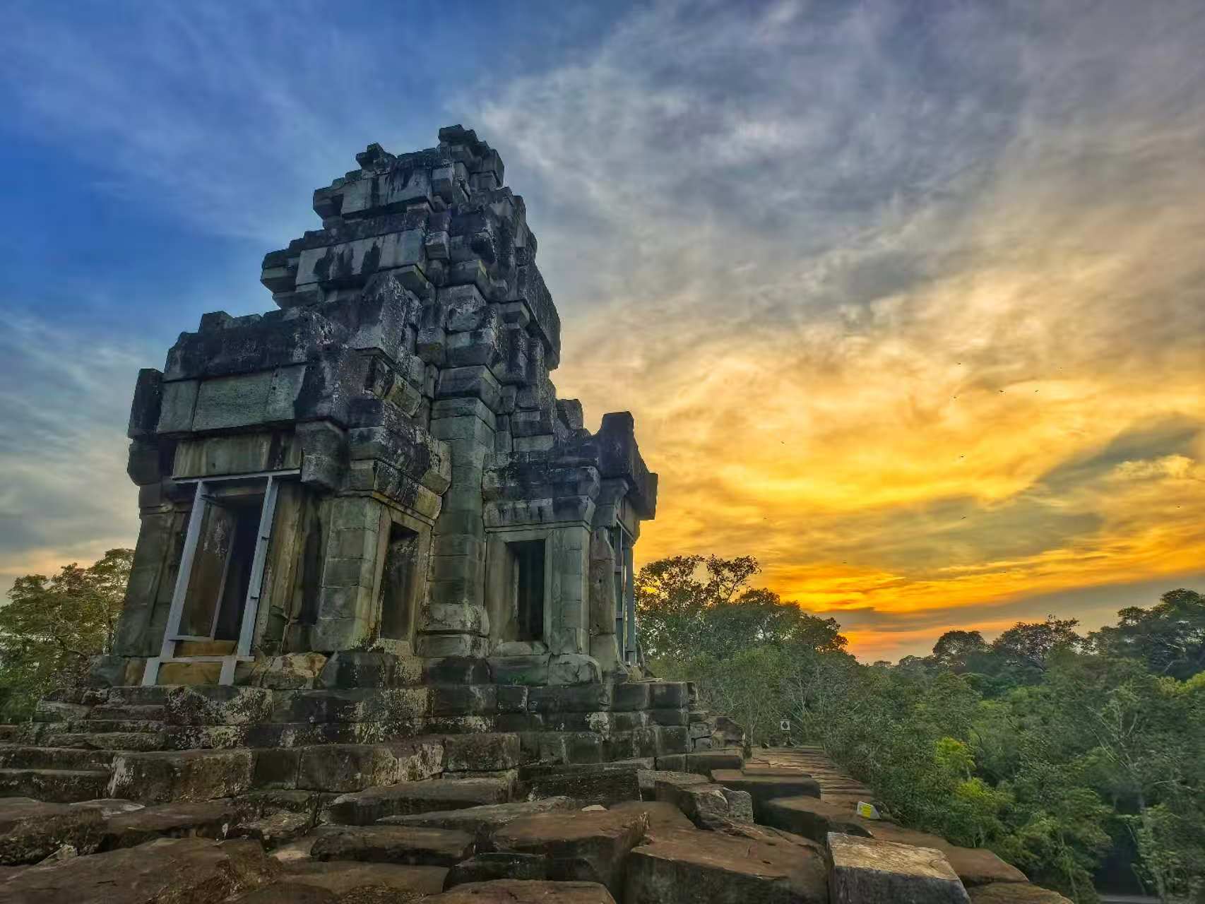 位于柬埔寨暹粒省的吳哥古跡坐落在一片密林之中。傍晚,一縷夕陽(yáng)照射在茶膠寺高聳的砂巖塔上,為這座千年古寺籠罩上了一層柔和的金光。“Hello Bong(你好,大哥)!”記者向管理員打招呼?!澳愫茫 惫芾韱T用中文回復(fù)道。