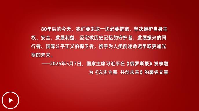 展望未來,在變亂交織的世界中,習近平強調“以史為鑒”,堅定做歷史記憶的守護者、發(fā)展振興的同行者、國際公平正義的捍衛(wèi)者,攜手為人類前途命運爭取更加光明的未來。