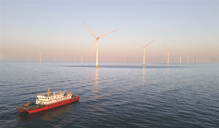 看項(xiàng)目,位于山東的墾利100萬千瓦海上光伏項(xiàng)目,創(chuàng)新性地采用海域立體分層開發(fā)策略,海上光伏發(fā)電的同時(shí),在光伏場區(qū)水域底部進(jìn)行貝類養(yǎng)殖,實(shí)現(xiàn)光伏發(fā)電和漁業(yè)養(yǎng)殖的互融互補(bǔ),有效提升了海域空間利用率和整體開發(fā)收益。項(xiàng)目建成后,一年可發(fā)電17.8億度,節(jié)約煤50.38萬噸,減少碳排放134.47萬噸。