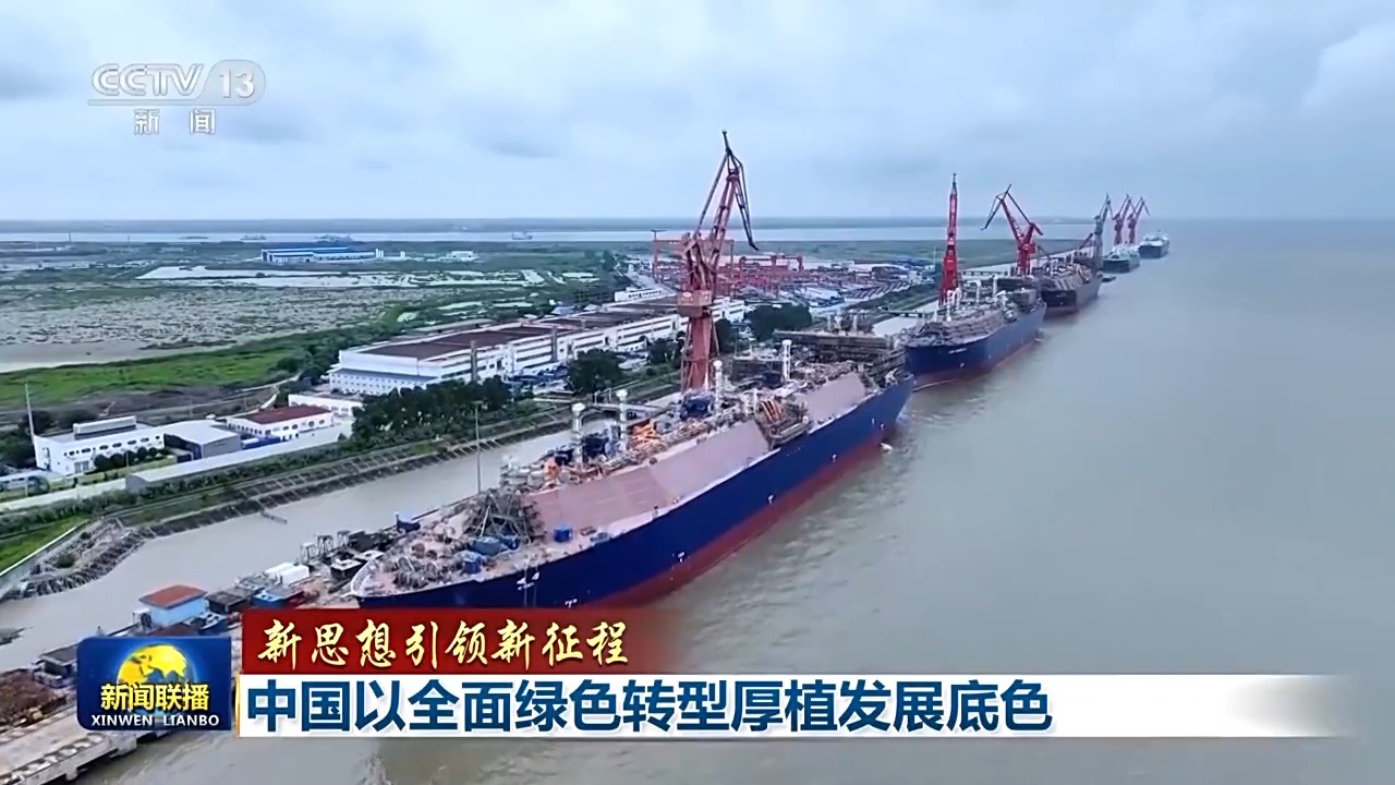上海長興島,三大船廠生產(chǎn)線晝夜不息。今天,“綠色船舶中國造”已經(jīng)成為了船舶市場上的新趨勢,中國新接綠色動(dòng)力船舶訂單占國際市場份額從2021年的31.5%增長至2024年的78.5%。